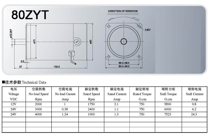 產(chǎn)品型號(hào):70ZYT,80ZYT直流電機(jī)